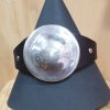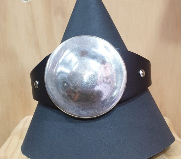 Pulsera de cuero plano marrón ancho, pieza y cierre de gancho de zamak.